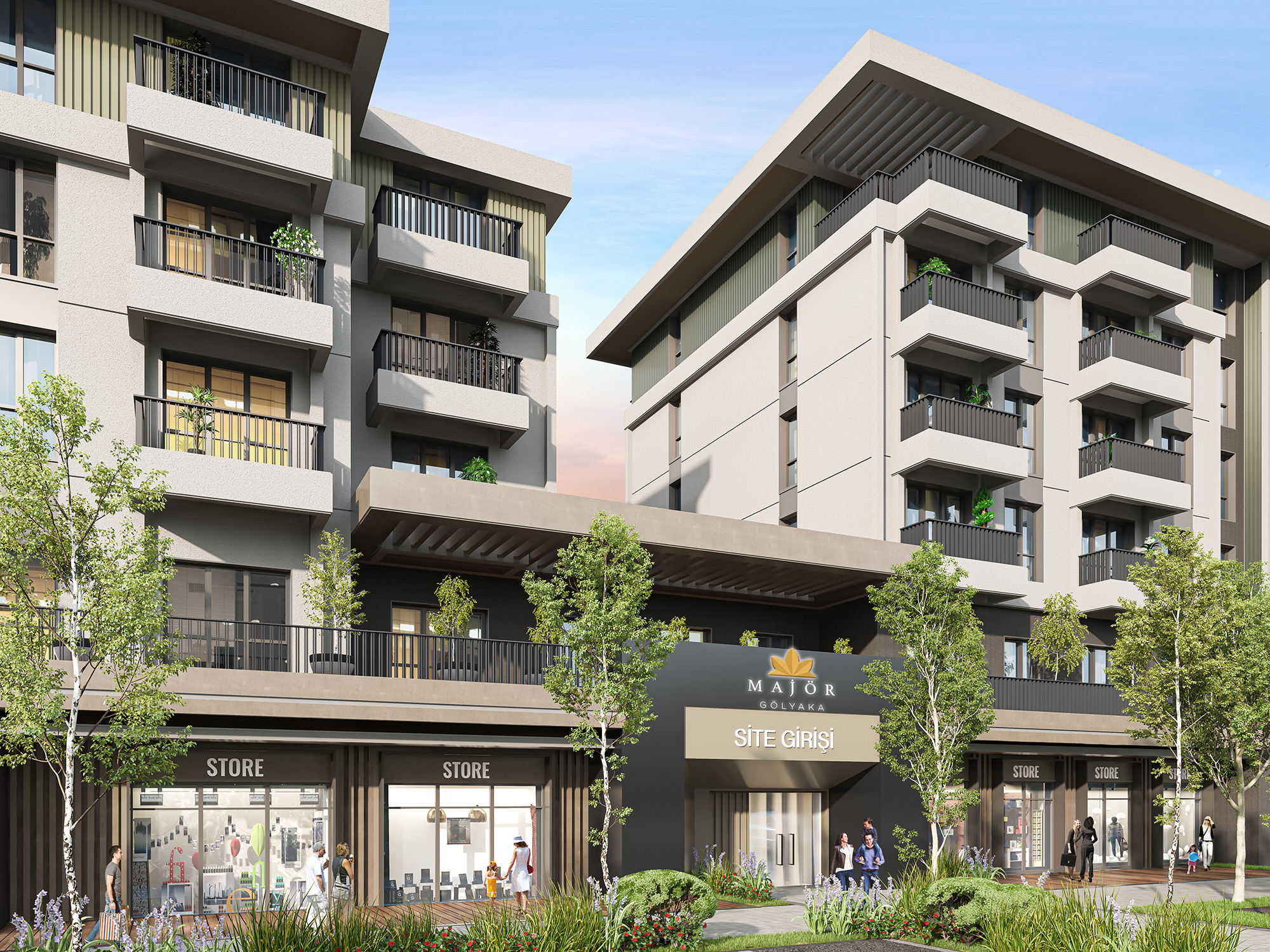 Yatay mimarisiyle öne çıkan Majör Gölyaka geniş peyzaj alanları, spor ve sosyal donatı alanlarıyla keyifli ve huzurlu bir yaşam alanı sunuyor.