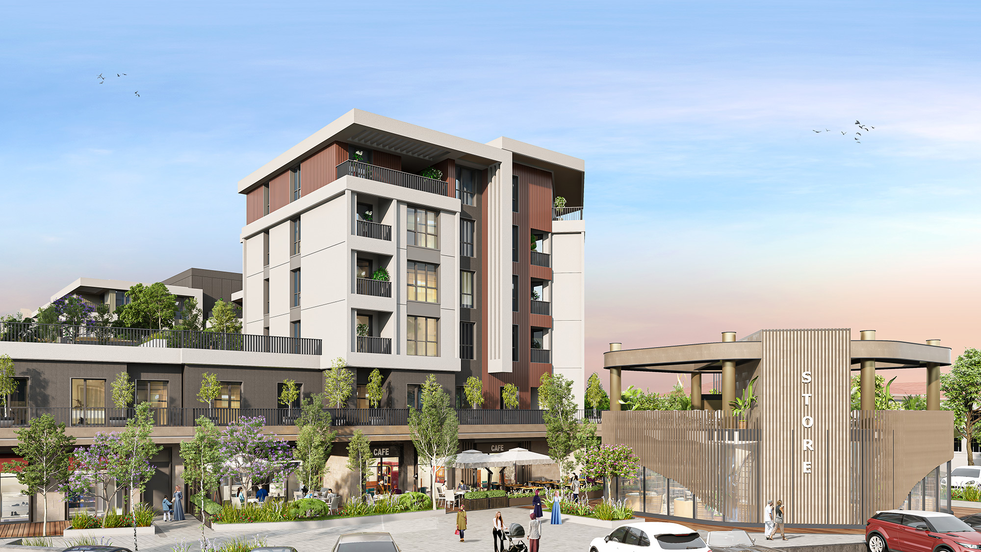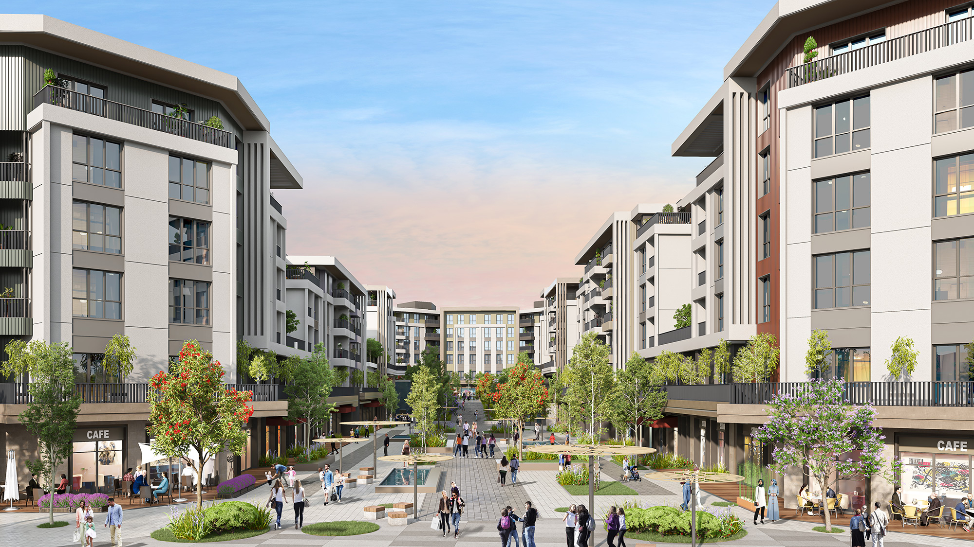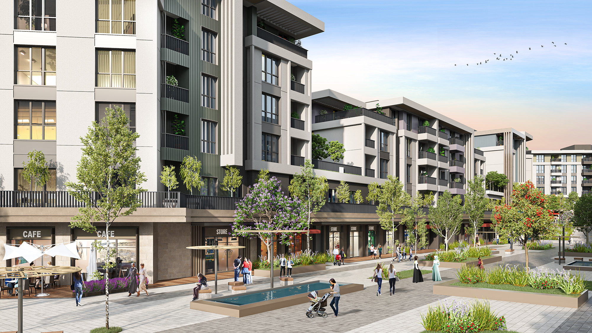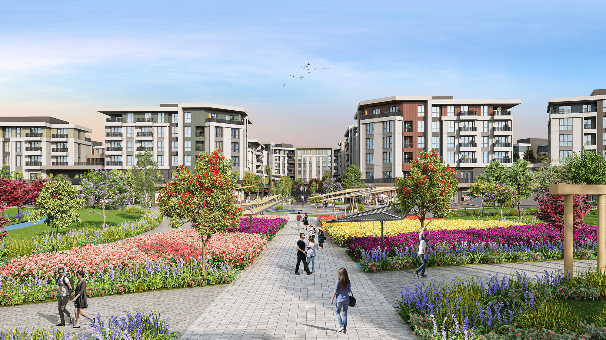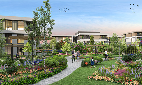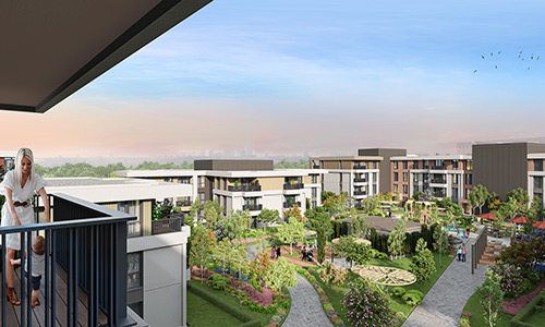 İster balkonlu, isterseniz teraslı ya da bahçe katı seçenekleri ile yatay mimari konseptinde toplam 711 konut.